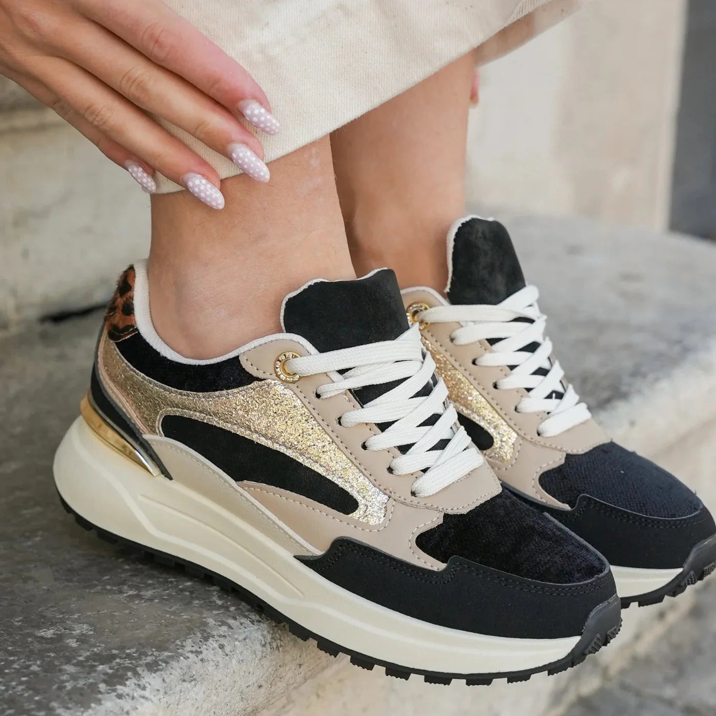 Baskets Boue Et Or Avec Détails Métalliques Et Semelle Plateforme