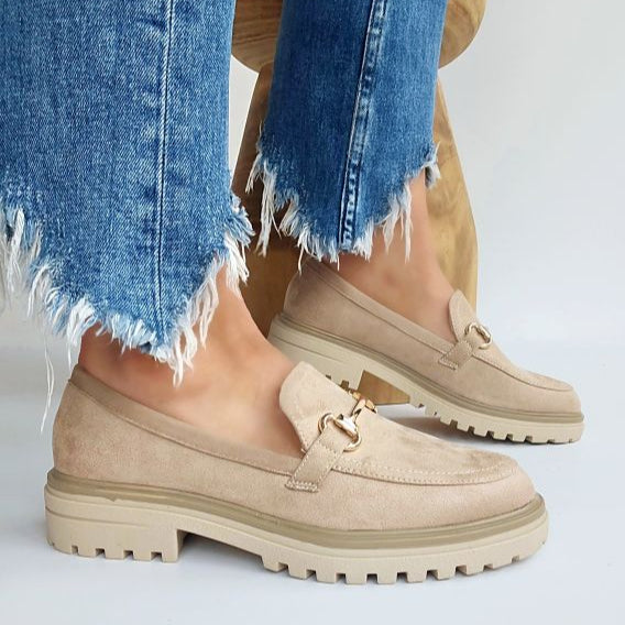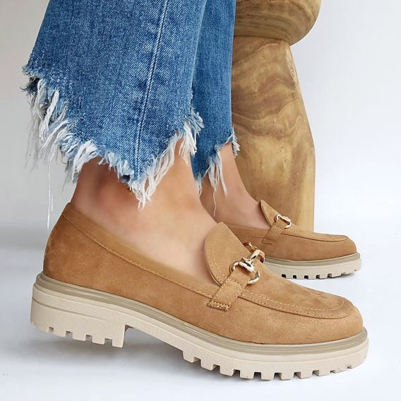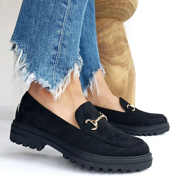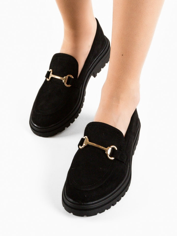 Mocassin suédine semelle épaisse boucle dor Noir