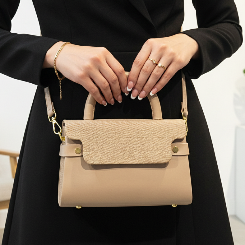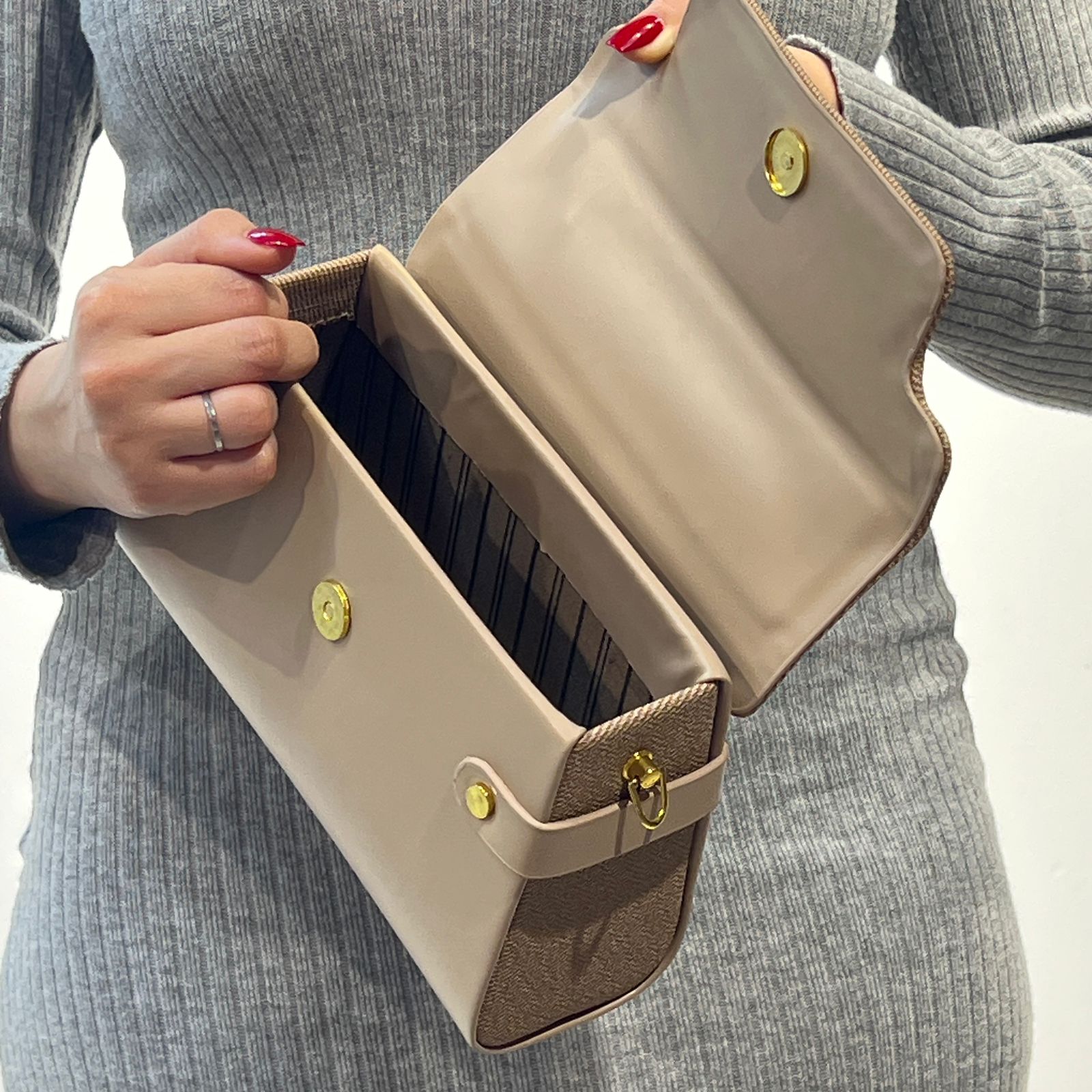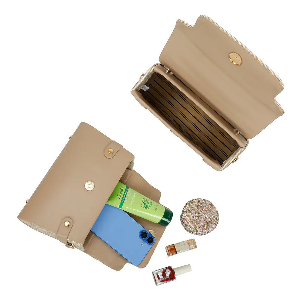 Ce sac se distingue par sa silhouette structurée, idéale pour accueillir vos essentiels quotidiens tels qu'un téléphone, un portefeuille et d'autres petits objets. Son design élégant et ses matériaux de qualité en font un accessoire de mode polyvalent, adapté à diverses occasions, qu'il s'agisse d'une sortie décontractée ou d'un événement plus formel.