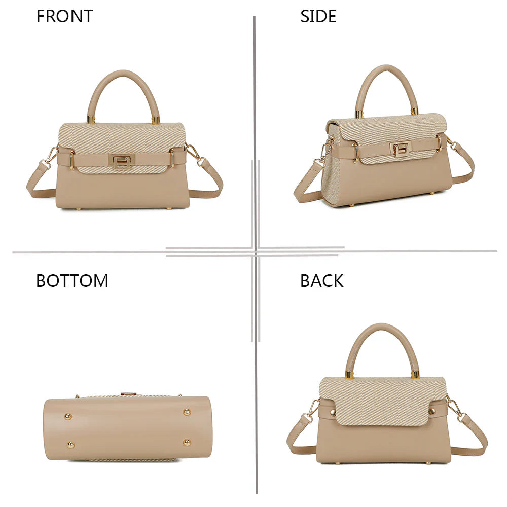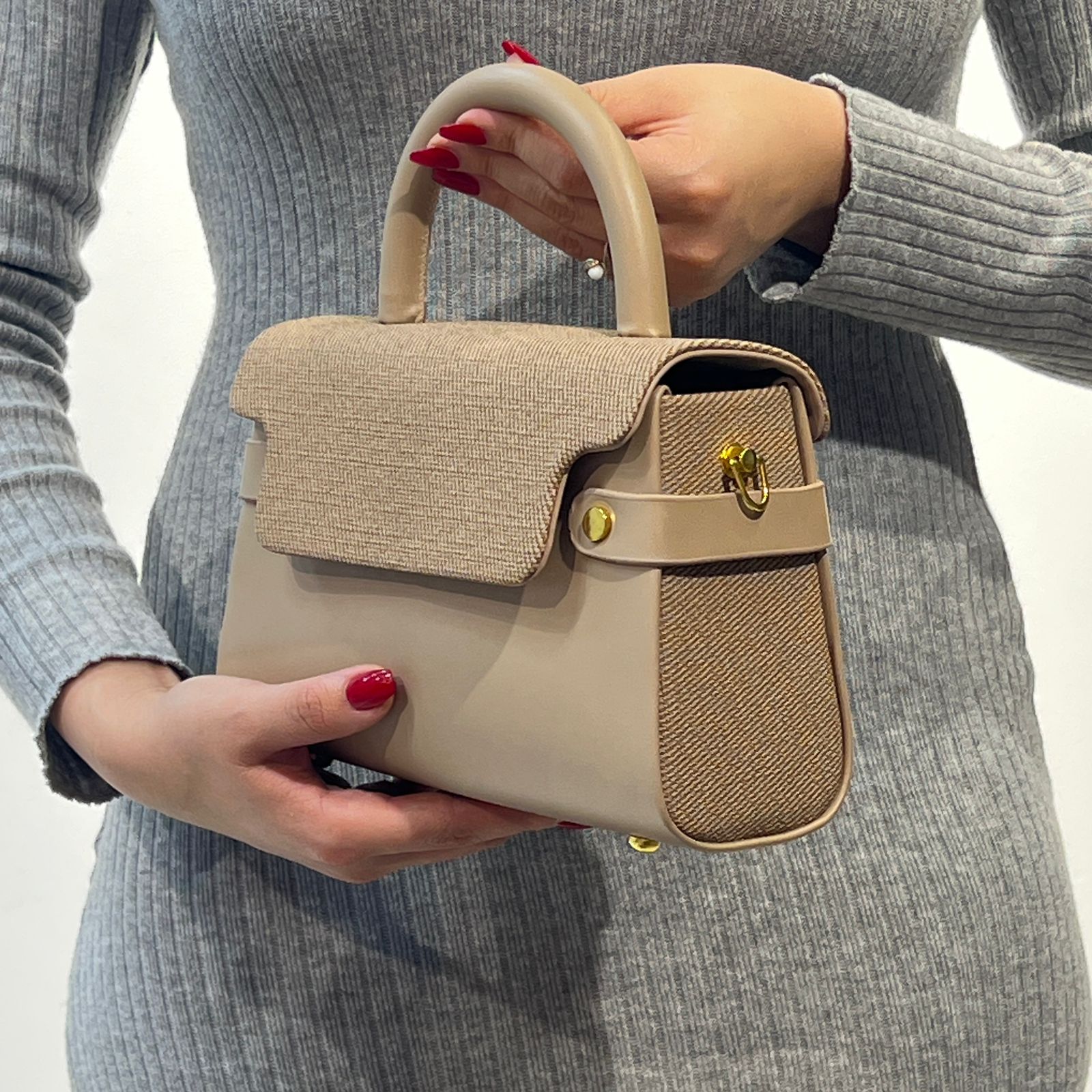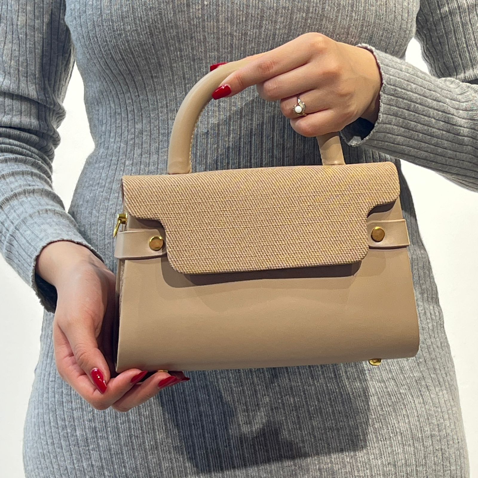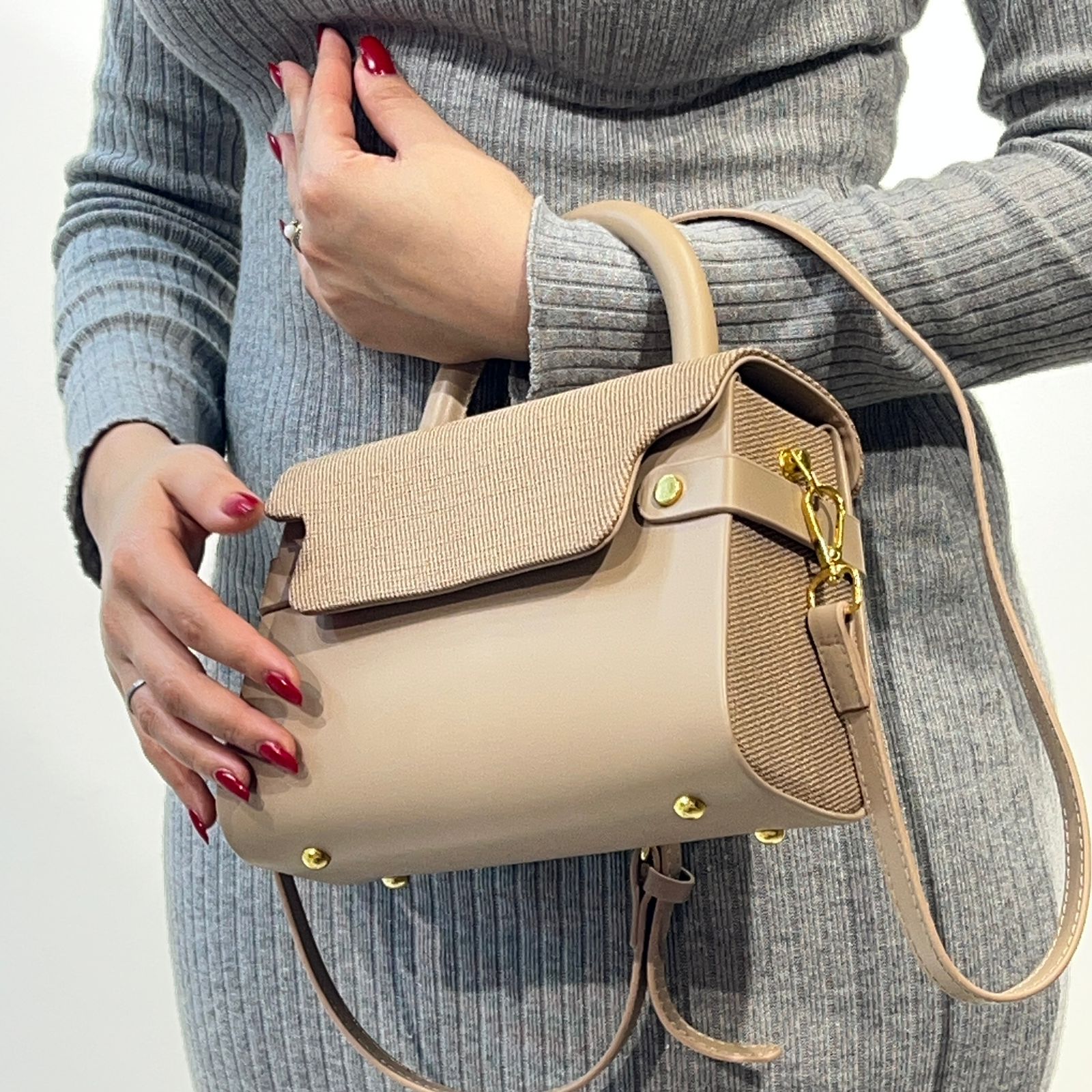 Un véritable bijou de délicatesse, séduit par son design structuré et ses lignes épurées. Confectionné dans une matière effet cuir grainé associée à un tissu tissé, ce sac pastel apporte une touche de fraîcheur et de raffinement à toutes vos tenues. Sa fermeture à rabat est rehaussée d’un fermoir doré purement décoratif ; l’ouverture principale se trouve discrètement à l’arrière du sac pour plus de sécurité et de praticité. Sa bandoulière amovible permet un porté main ou épaule selon vos envies.