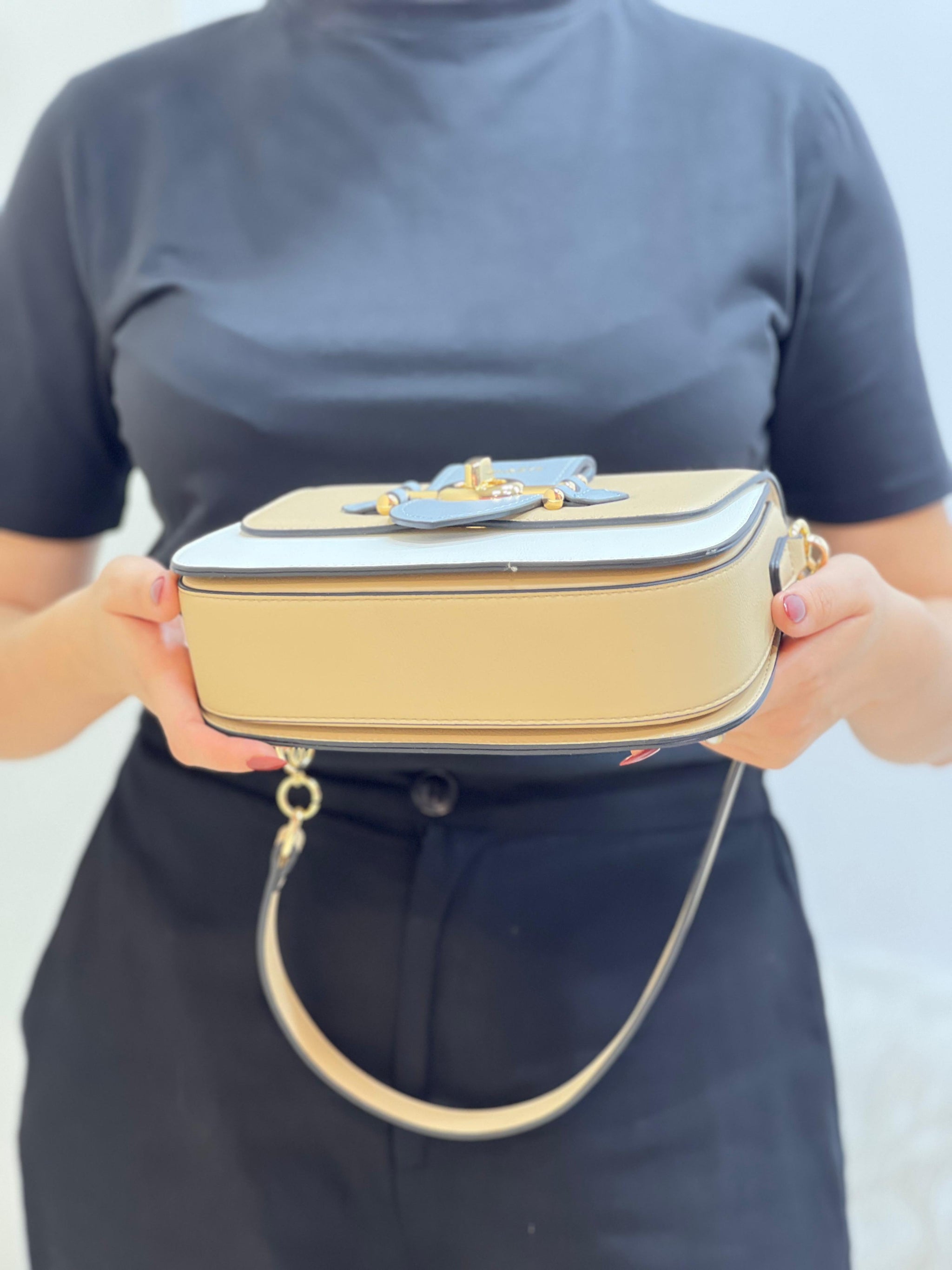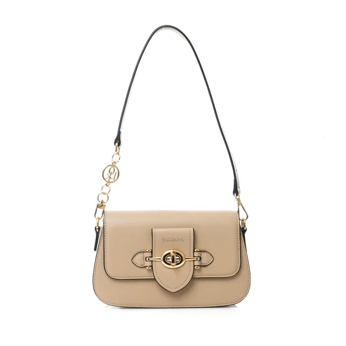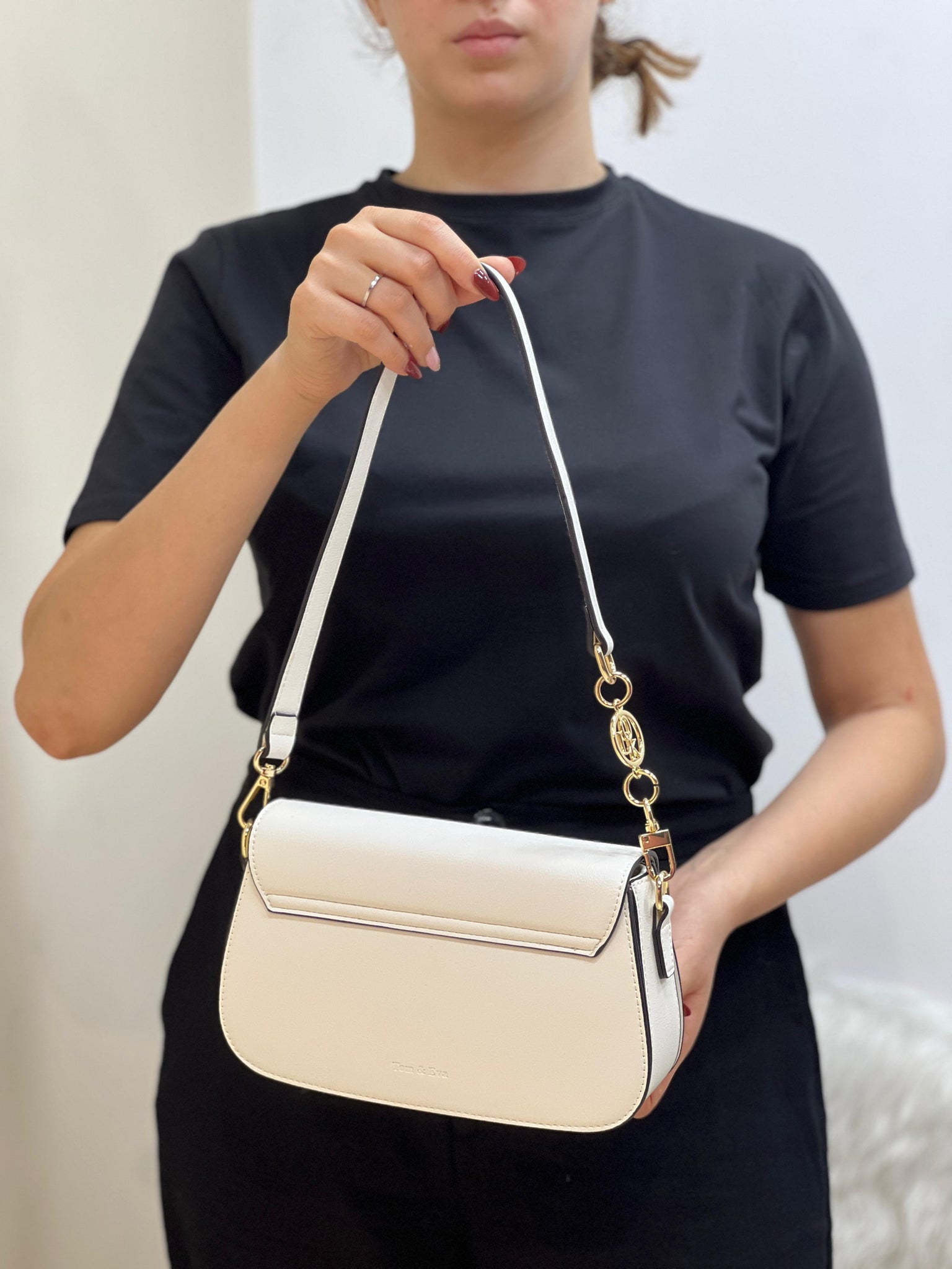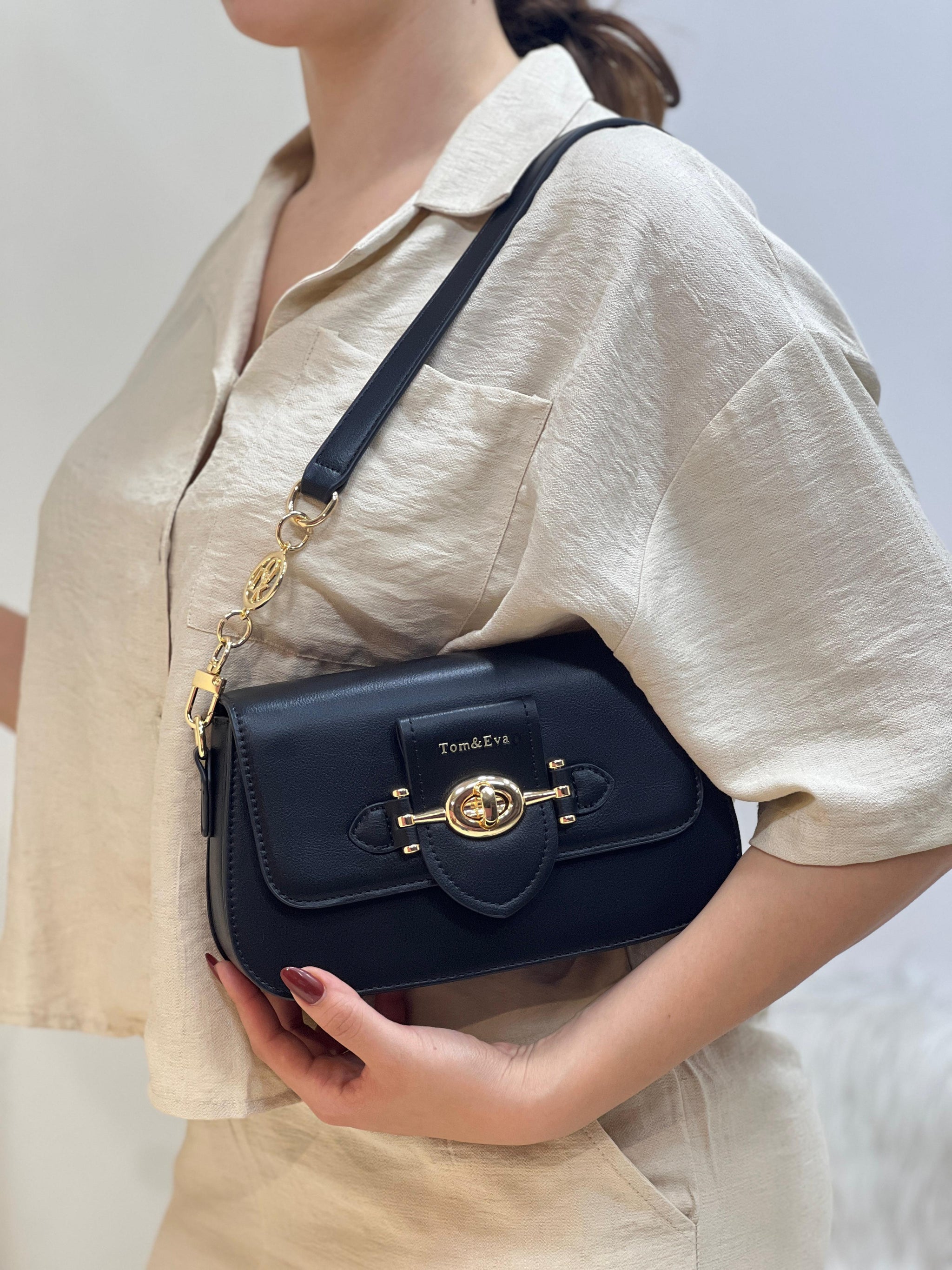 • Finition : Les accents métalliques dorés (fermoir, chaîne décorative latérale, anneaux) ajoutent une touche de raffinement.