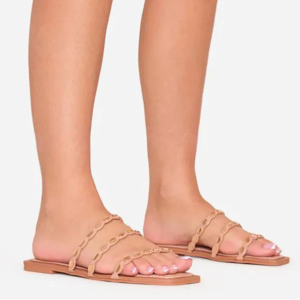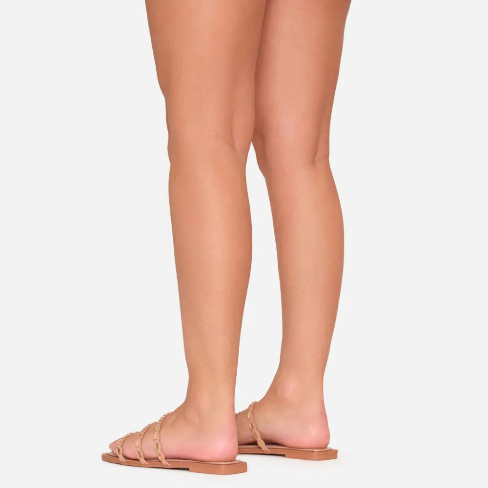 marchez en toute confiance avec nos sandales plates à brides multiples en similicuir . ces sandales à lanières noires et dorées sont vos préférées de l'été avec leur design à lanières, leurs clous et leur semelle plate. confectionnées en similicuir noir, ces sandales à brides sont naturellement chics !