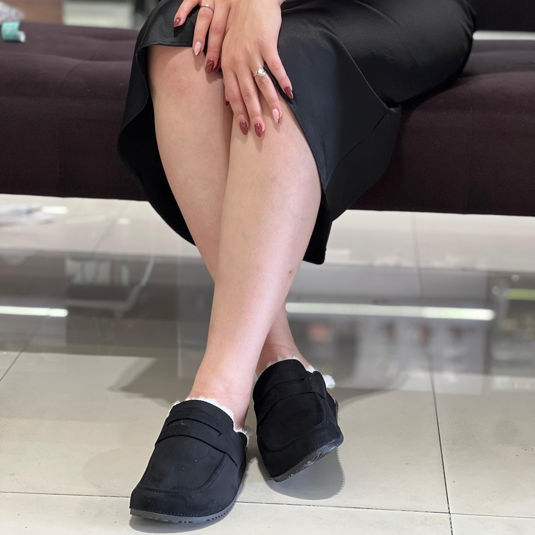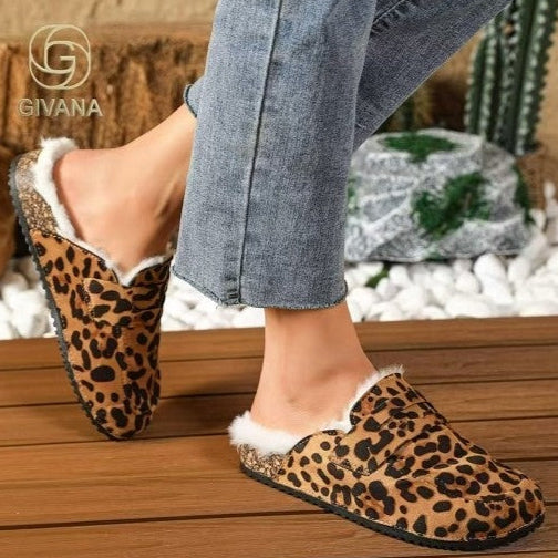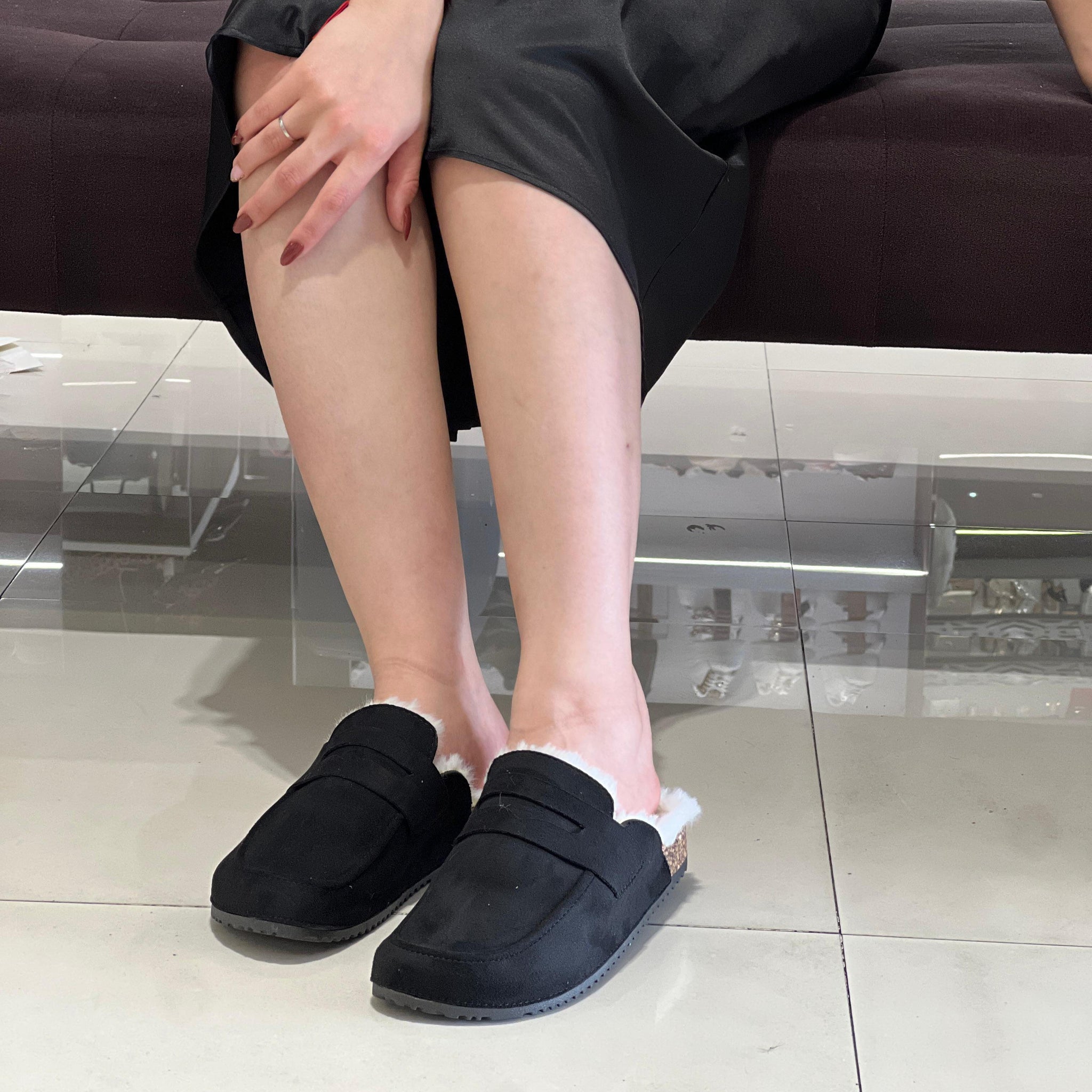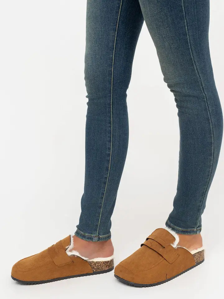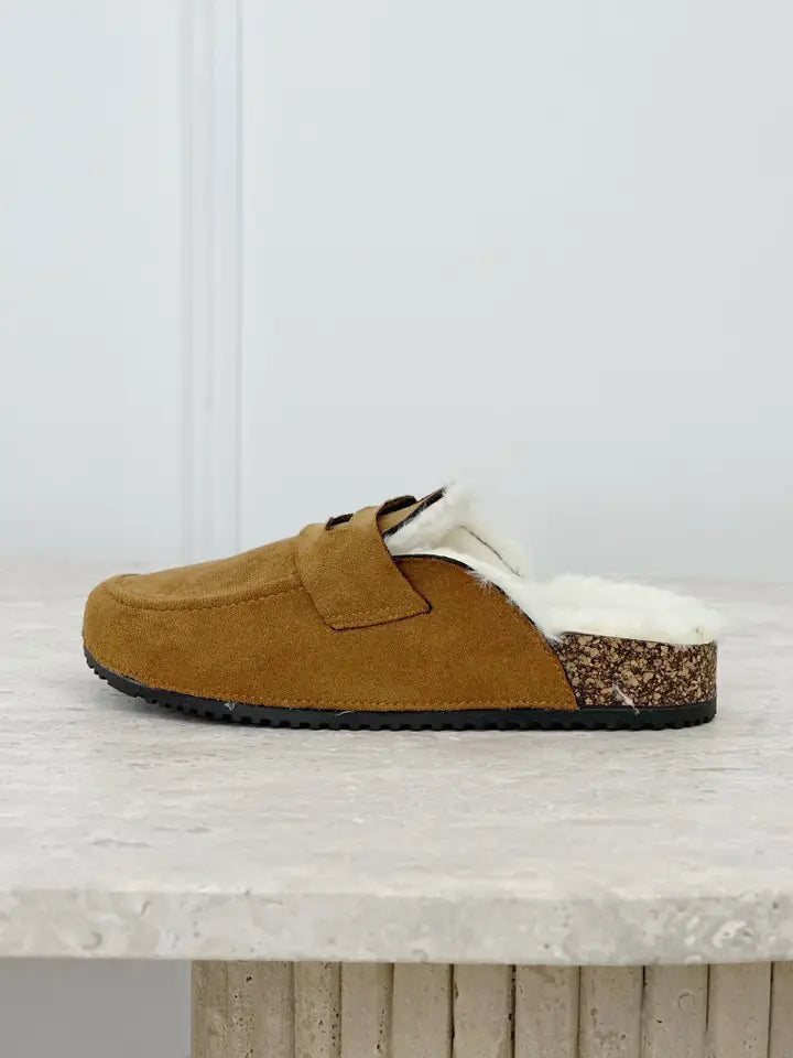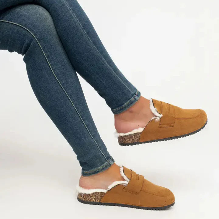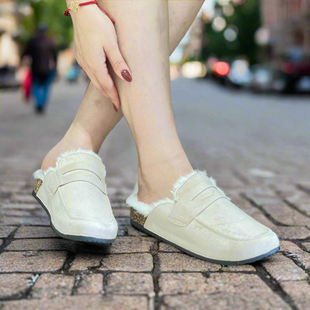 Sabot en simili-suède avec semelle en liège ,bordure en fourrur